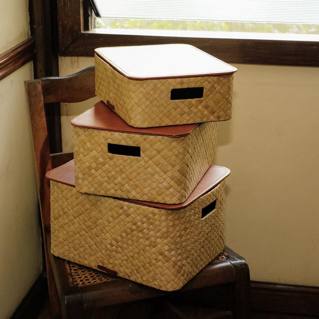 Handcrafted from woven pandan mats, comes 3 sizes spacious enough to store your office supplies and other odds and ends.
