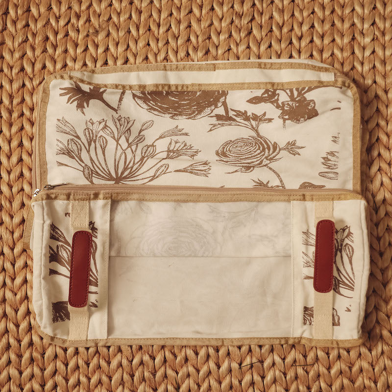 Comes with two canvas handles with faux leather details for easy transport.