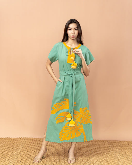Magdalena Apron Dress - Olive & Peach