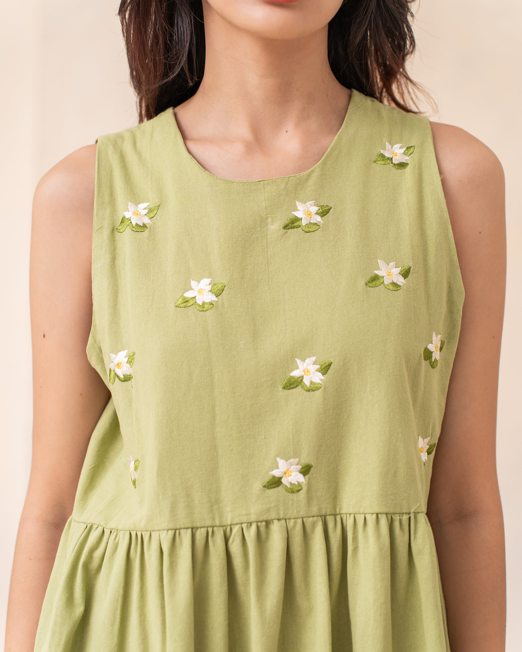 Features scattered embroidered Sampaguita flowers.