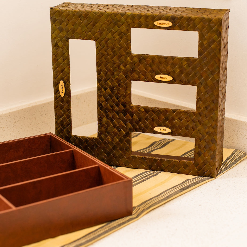 A natural and rustic mix give the Remi Food Storage Bag Dispenser a unique character to your kitchen drawers.